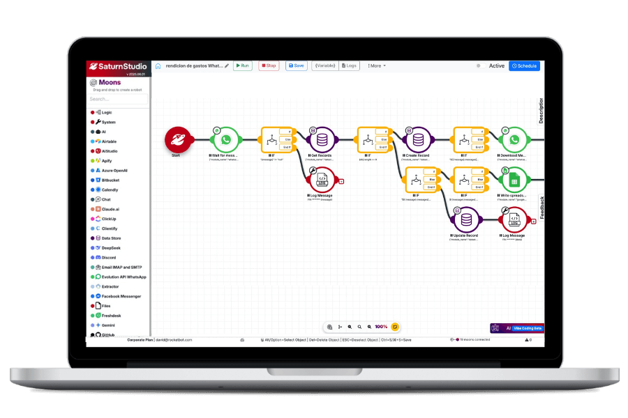Accede a todas las herramientas clave: crea tus primeros bots, entrena modelos de IA, monta flujos automatizados, todo en un solo lugar.